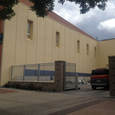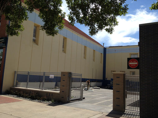Progress photos showing the painting of Gale's Lolli-poppies mural in 2015